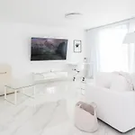 Apartmentul Emirates White Sensation Apartment îi invită pe oaspeți la un balcon și o zonă de dressing dotate cu fier de călcat și masă de călcat, facilități de călcat, aer conditionat, precum și cu facilități de divertisment, cum ar fi un televizor și un TV prin cablu cu filme la cerere. Pe lângă o canapea și un birou, elementele de interior includ, de asemenea, ferestre izolate fonic. 1 baie este dotată cu un bideu, un duș walk-in și o toaletă separată. Baia are uscătoare, prosoape de baie și prosoape.